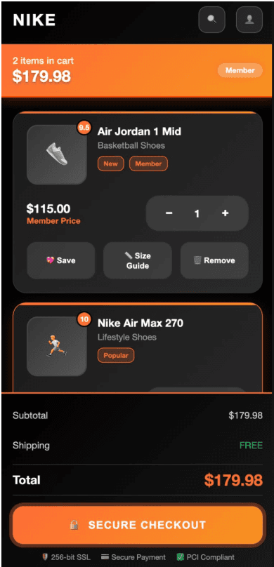 Expected Impact: Research shows transparent pricing can reduce price-related abandonment, potentially recovering significant revenue from Nike’s high-value athletic footwear and apparel sales.